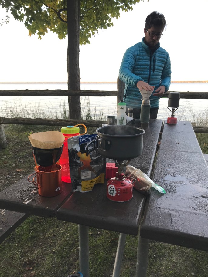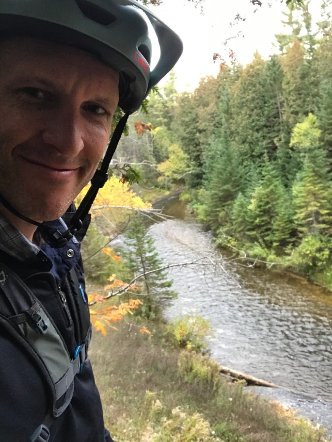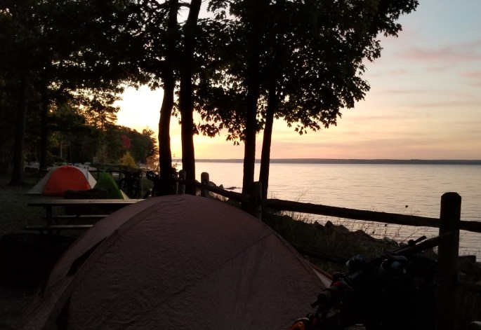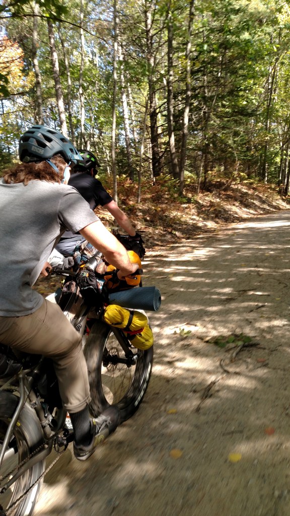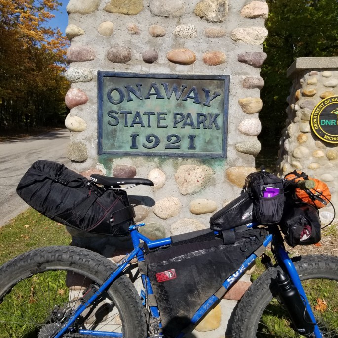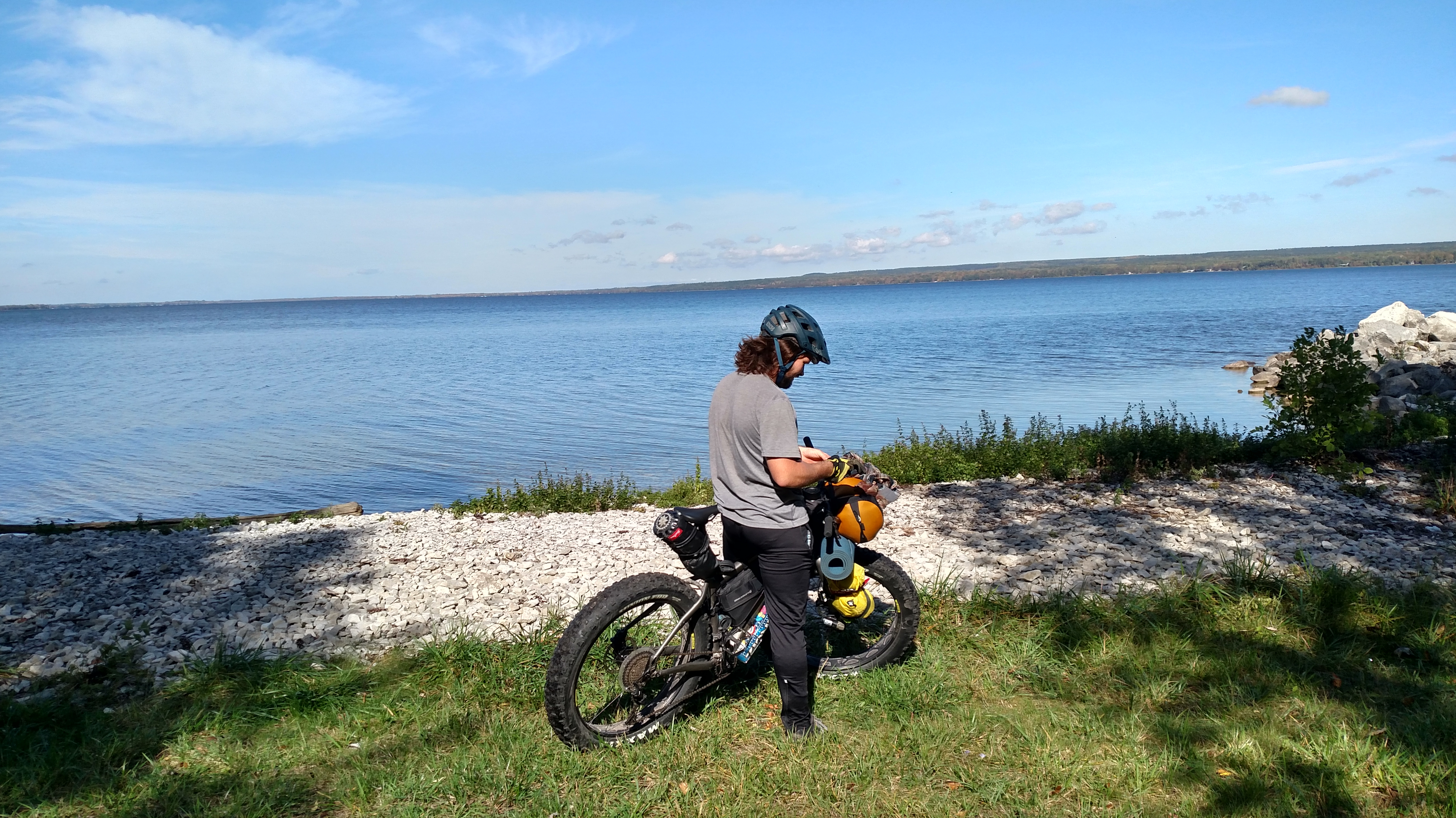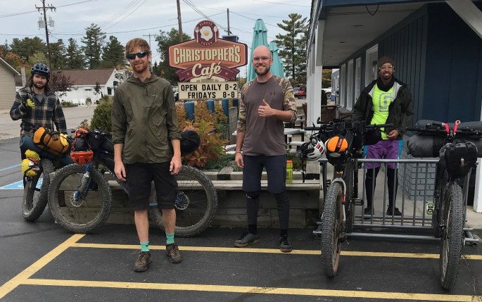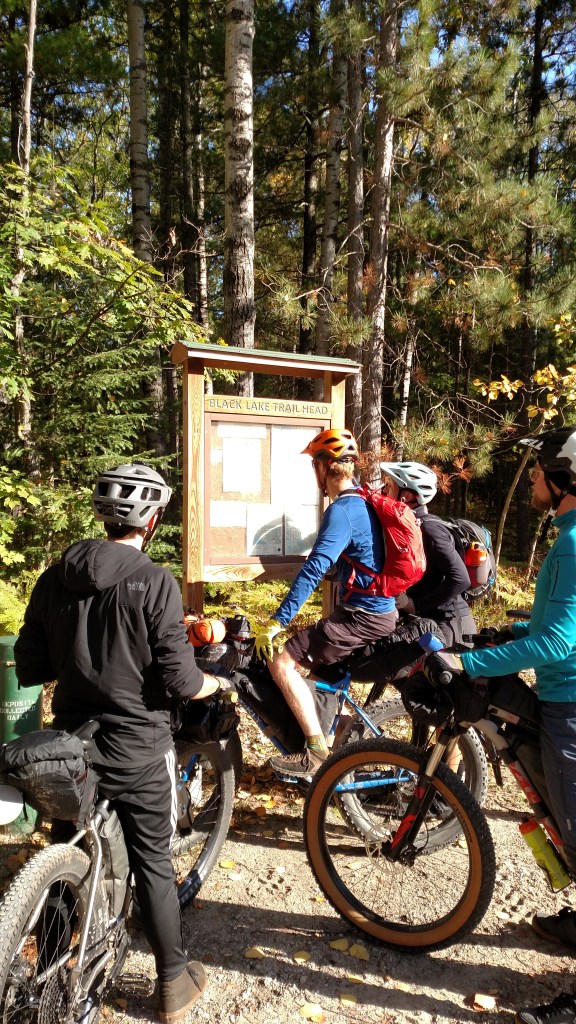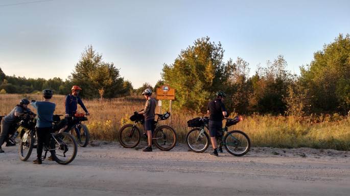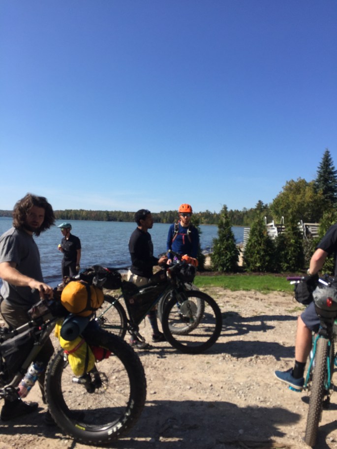 This year’s adventure took staffers on a 130-mile clockwise loop that heavily utilized Northern Michigan’s stellar trails. Amid sunny skies and mild temperatures, the group headed north out of Petoskey along the Little Traverse Wheelway and the North Western State Trail. After a brief stop for supplies, they continued northeast toward Black Lake, where they spent their first night in the gorgeous Black Lake State Forest Campground.