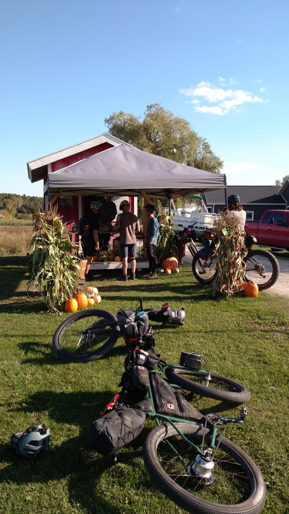 Distance on the first day totaled just over 60 miles, leaving an additional 70 miles for the second and final day. Day two brought more beautiful weather and the seven bikepackers headed toward their next destination – a cabin several miles east of Indian River. Several games of Euchre were played, stories were shared, and the warmth of a wood stove was appreciated.
