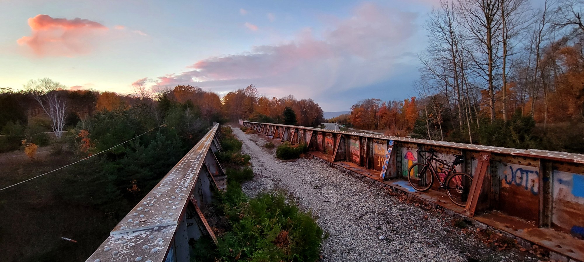 Though the Bluffs section of the Wheelway is still closed between Magnus Park and East Park, I’ve gotten used to making the short hop on U.S. 31 shoulder to where the trail connects again at East Park. The shoulder riding is too scary for some, but I’ve discovered that the highway features a wide, smooth shoulder, and motorists are generally courteous.